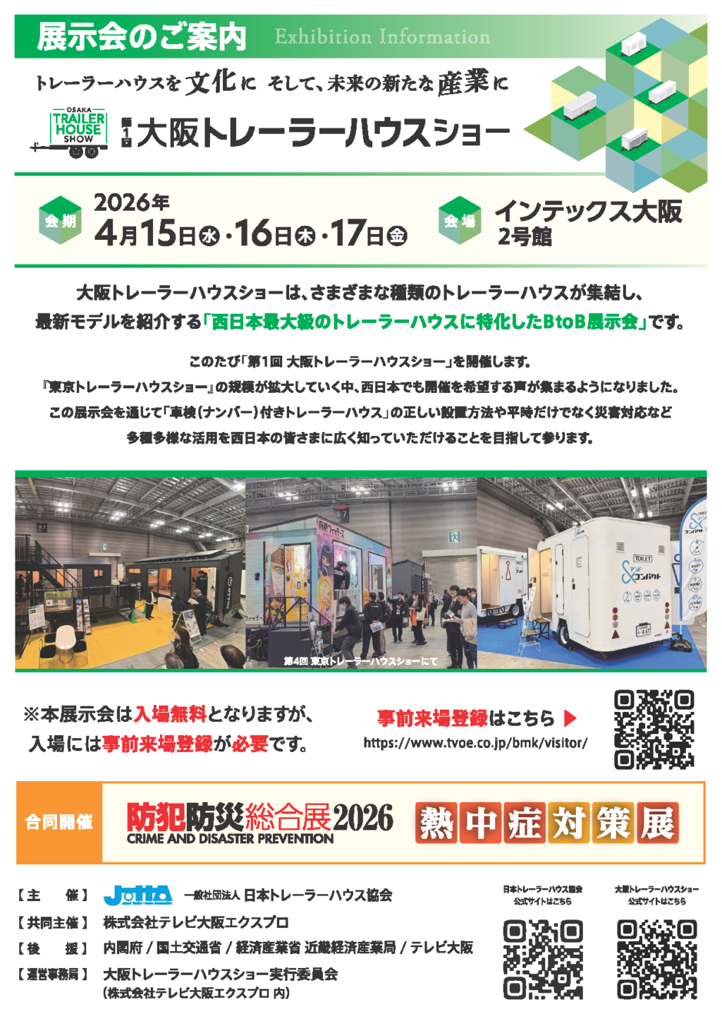 トレーラーハウスショーが大阪で開催されます! 弊社の2×4工法で製作した 「MUGEN WOOD LITE MOBILE HOUSE」を展示いたします。 この機会にぜひ、 実物の木造トレーラーハウスをご覧になってください。 ◆4月15日(水)~17日(金) 10:00~16:30(最終日は16:00まで) ◆インテックス大阪 2号館 ◆入場には事前来場登録が必要です(入場無料) 登録はコチラから➡ https://www.tvoe.co.jp/bmk/visitor/